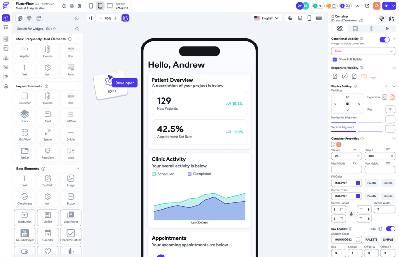 Создает приложения с помощью блокового редактора, не требующего знания кода. Вместо написания непонятных слов – перетаскивание мышкой элементов интерфейса.